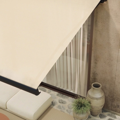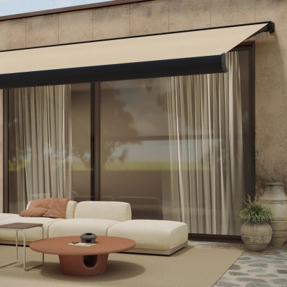 Ripara tutto il tessuto ad eccezione della sola mantovana. Tiene al riparo anche i bracci e le parti meccaniche della tenda.